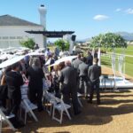 www.valdevie.co.za _What a stunning venue! We drove through the Franschoek Winelands on a beautiful, hot day and played as the guests arrived. Our beautiful bride had requested ‘The Swan’ by Camille Saint-Saens as her entry song and indeed she was as lovely and graceful as this exquisite bird. The guests twirled their sunshades as the happy couple made their vows, and afterward, our Trio (www.hungariantrio.co.za of course) serenaded them as they tucked into a glorious cheese and berry tower, accompanied by delicious Val de Vie wines. In addition to having roving live musicians playing Hungarian Gypsy tunes, Vivaldi Four Seasons, O Sole Mio, romantic French cafe? tunes and many others, the guests were treated to a polo match. Splendid horses and riders appeared and galloped up and down the field-thrilling indeed!