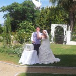 For the ceremony, we set up in this lovely garden and played some beautiful, soothing classical background music as the guests arrived, all exclaiming at the loveliness of the garden and the music. Gabriel’s Oboe from The Mission is always a great favourite, along with Vivaldi’s Four Seasons and Pachelbel Kanon, and Bizet’s Carmen adds spice to the mix. The grandparents and parents entered to Bach’s Air on a G-String, and the couple chose the Mendelssohn Wedding March, always a stirring and emotional choice for entry.